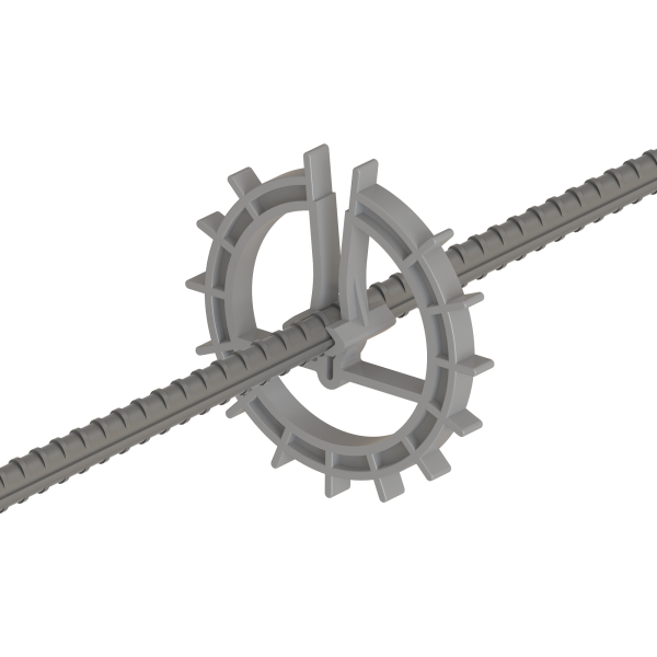 Reid Circular Spacers are designed for use in civil precast and commercial construction applications. The unique design offers 360 degrees of cover. Built-in sleeves prevent the Circular Spacer from twisting when in position, holding the bar firmly in place. The Circular Spacer provides the same level of concrete cover, irrespective of the bar diameter in use.