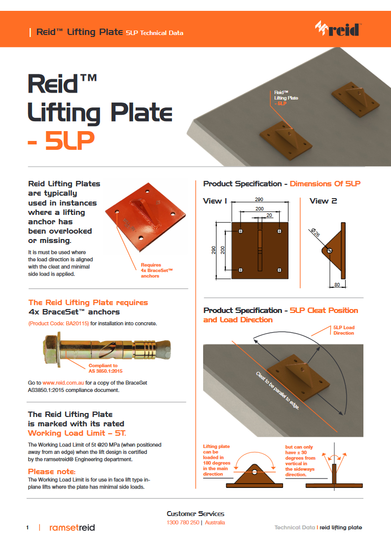 | Reid Lifting Plates 5LP Technical Data Sheet | Technical Data Sheets | Technical Data for the Reid Lifting Plates 5LP |